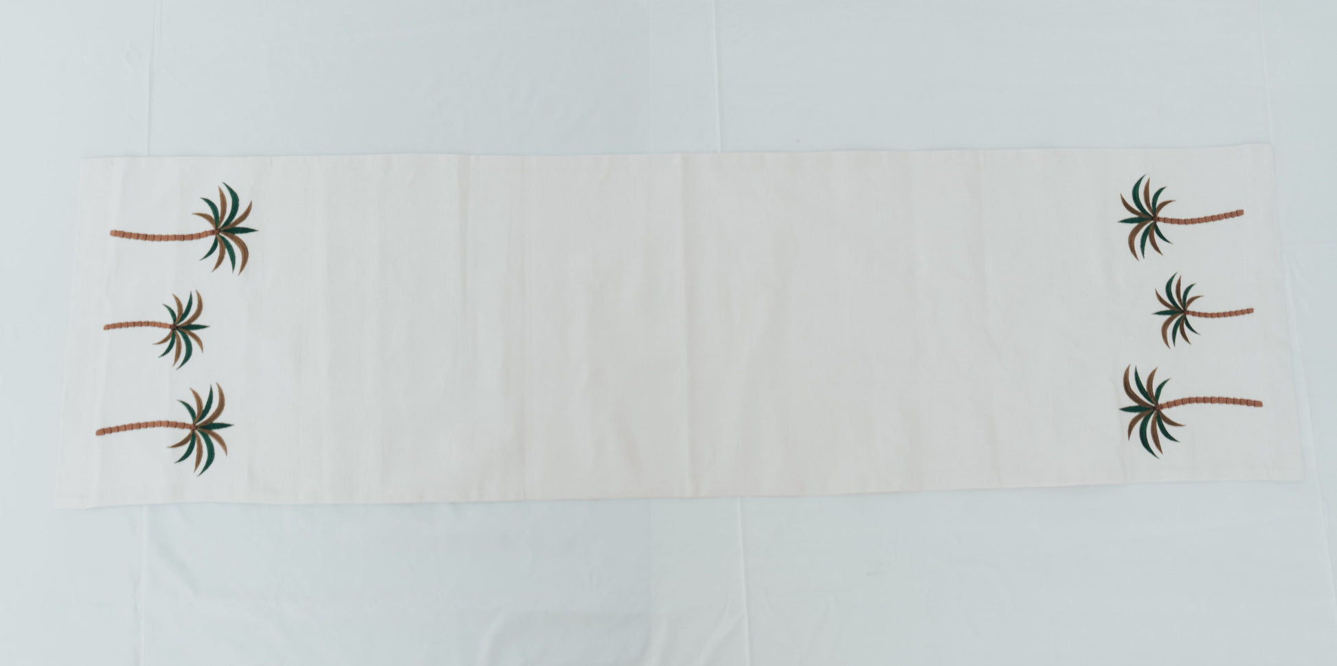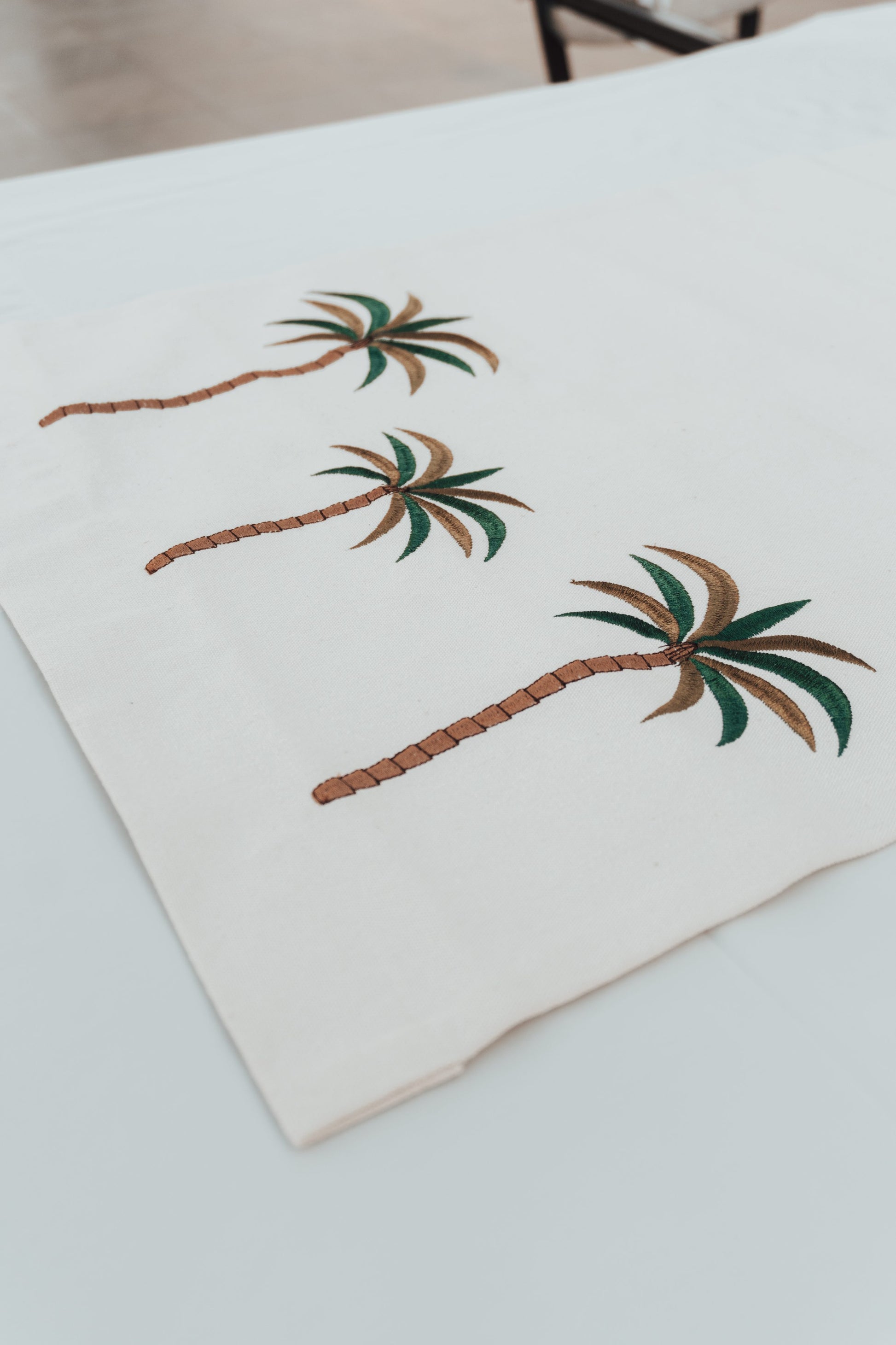 Elegant Palm Tree Embroidered Table Runner - Made of Premium Cotton Canvas
