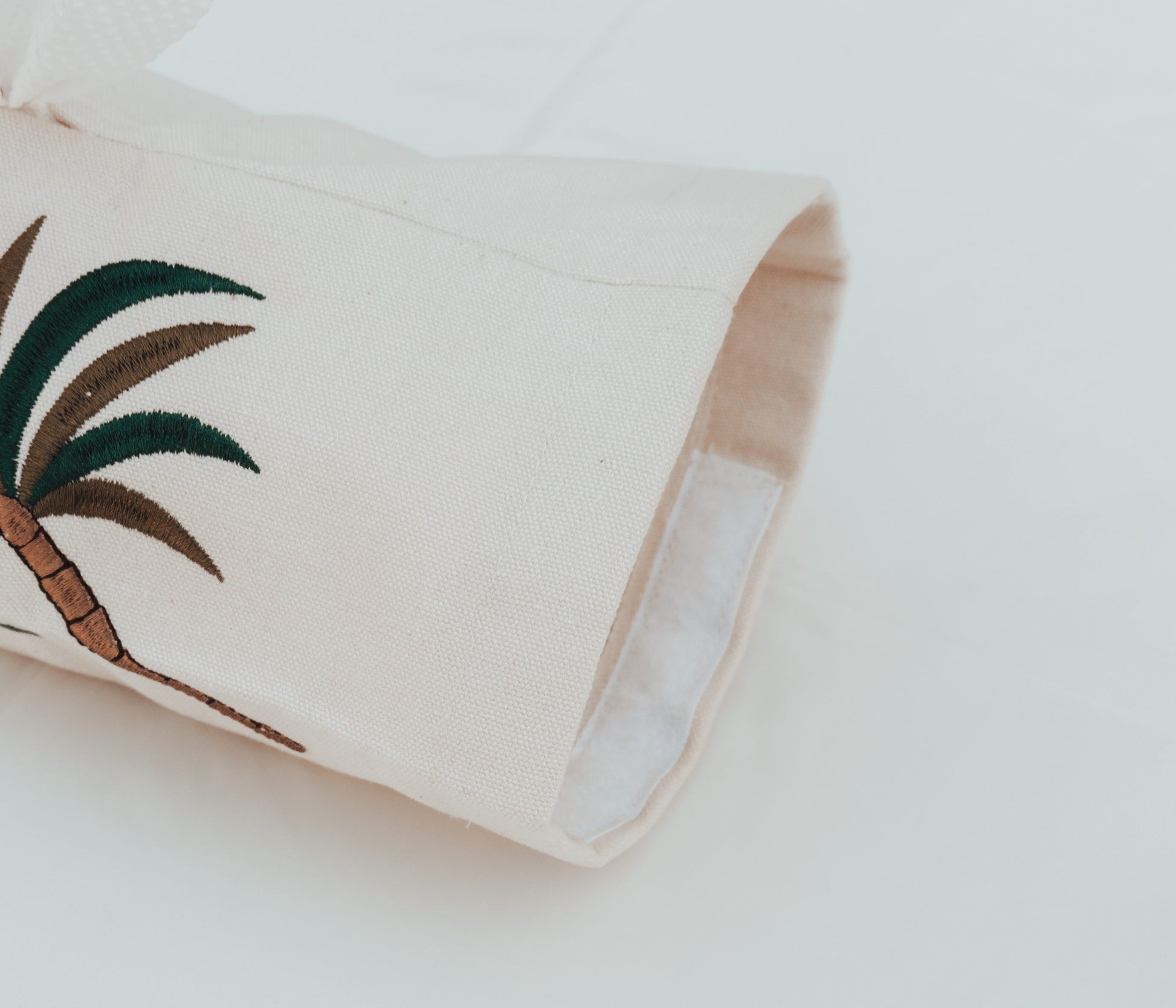 Set of 6 Handmade Cotton Canvas Cutlery Pockets with Palm Tree Embroidery – Tropical Theme, Made in Egypt