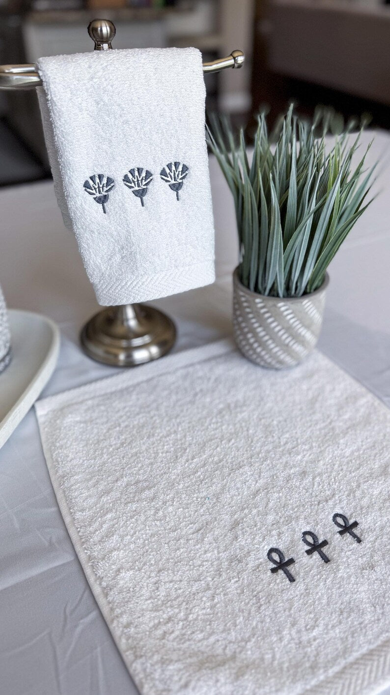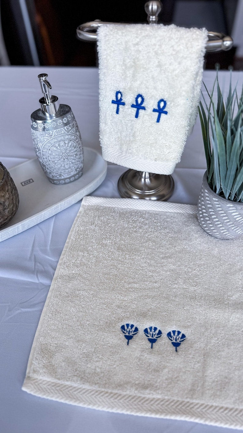 Hotel Grade 100% Cotton Guest Towels – Set of 2 - Made in Egypt | Ankh & Lotus Embroidery | Ancient Egyptian Symbol Towels