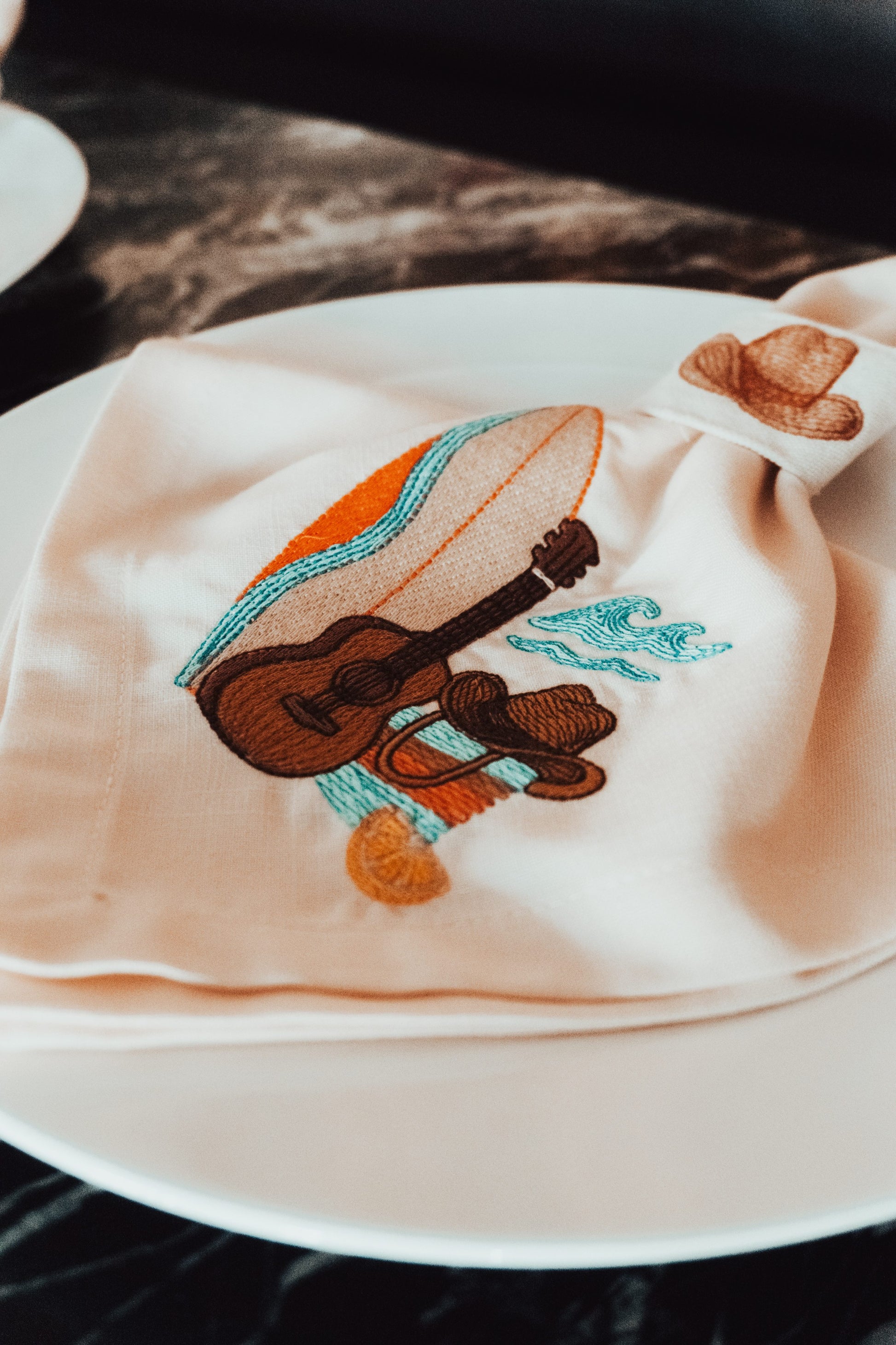Add a playful Western charm to your table setting with this embroidered linen napkin and matching canvas holder set, beautifully blending elegance and fun summer spirit. Crafted from soft linen and durable canvas, each piece features exquisite embroidery that elevates both casual and festive gatherings.